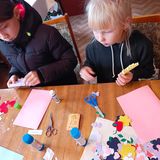 А мы продолжаем работать с бумагой. Хотенова Нина - руководитель детского формирования "Фантазеры" (Северный дом культуры) провела для детей творческий мастер класс по аппликации.
