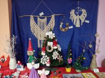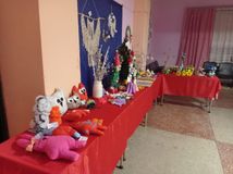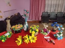 В фойе дома культуры была организована выставка мастеров прикладного искусства /"Рукодельницы"- рук. Третьякова С.Н. и деского формирования "Фантазеры"- рук. Хотенова Н.Н./ , которая поразила разнообразием техники, материалов и фантазией работников, мастериц и детей.