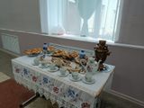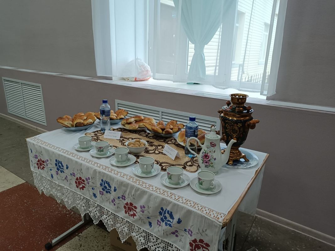 Фойе клуба превратилось в одну большую цветочно-овощную поляну. Кипели самовары, пахло пирогами и душистым вареньем. Все наслаждались приятным чаепитием, которое подготовили участники конкурса.