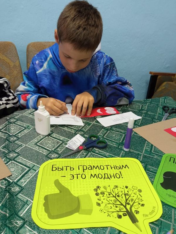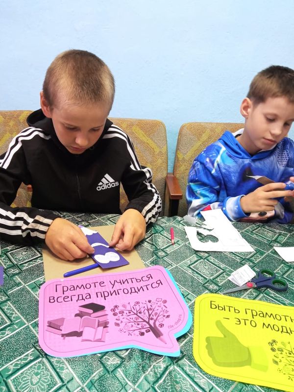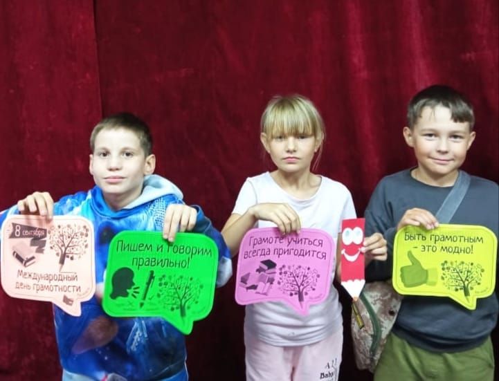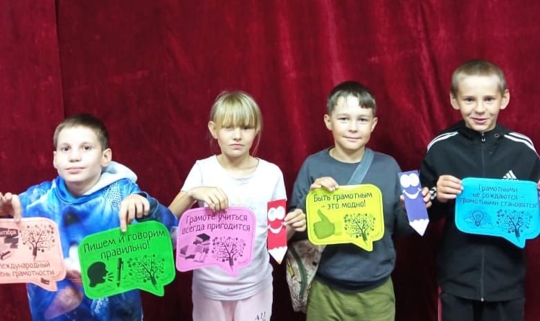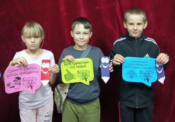 В ходе мероприятия Елена Ивановна рассказала, что такое грамотность, какой человек может считаться грамотным. Дети отвечали на вопросы викторины «Веселая Азбука», играли в игры «Собери слово», «Раз словечко, два словечко», вспоминали поговорки и пословицы о чтении и грамотности, все вместе попытались выучить скороговорки.