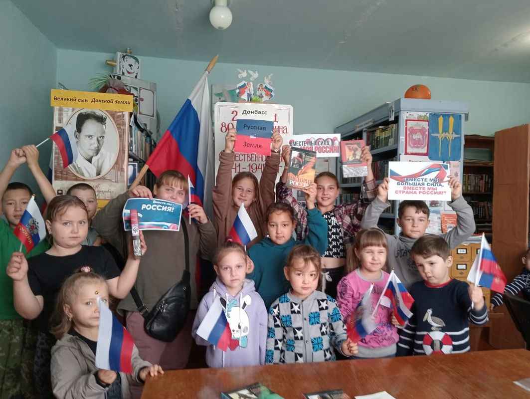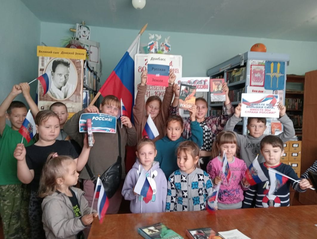 Ольга Степановна рассказала детям об истории праздника, о стремлении жителей Донбасса воссоединиться с Россией, свободно говорить на родном русском языке. Призвала ребят любить свою Родину, помнить историю нашей страны, чтить её символы, гордиться ею и обязательно помнить, что каждый из нас её частичка.