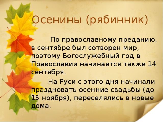 Осенины — народный праздник, символизирующий прощание с летом и встречу осени.