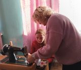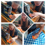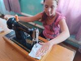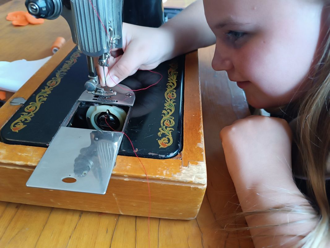На первом занятии девочки увлечённо изучали швейную машинку с ручным приводом 1960г. выпуска, заправляли нить и стачивали ткань.