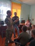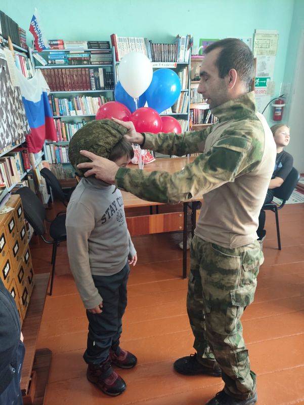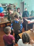В ходе беседы Михаил Михайлович рассказал ребятам о трудных боевых ситуациях и о том, как удаётся с ними справляться, что происходит на передовой, о вооружении бойцов, о дружбе и сплочённости тех, кто находится в зоне боевых действий. Он отметил, что письма с тёплыми словами от земляков и посылки из родного края греют душу каждому военнослужащему и поддерживают боевой дух.