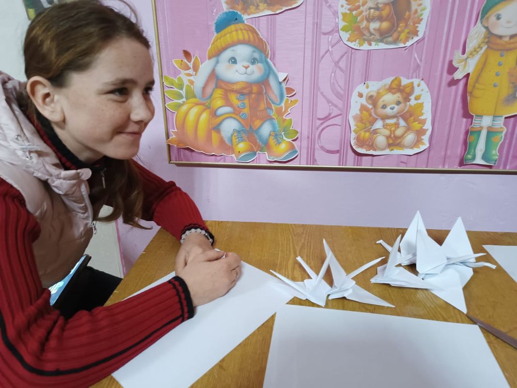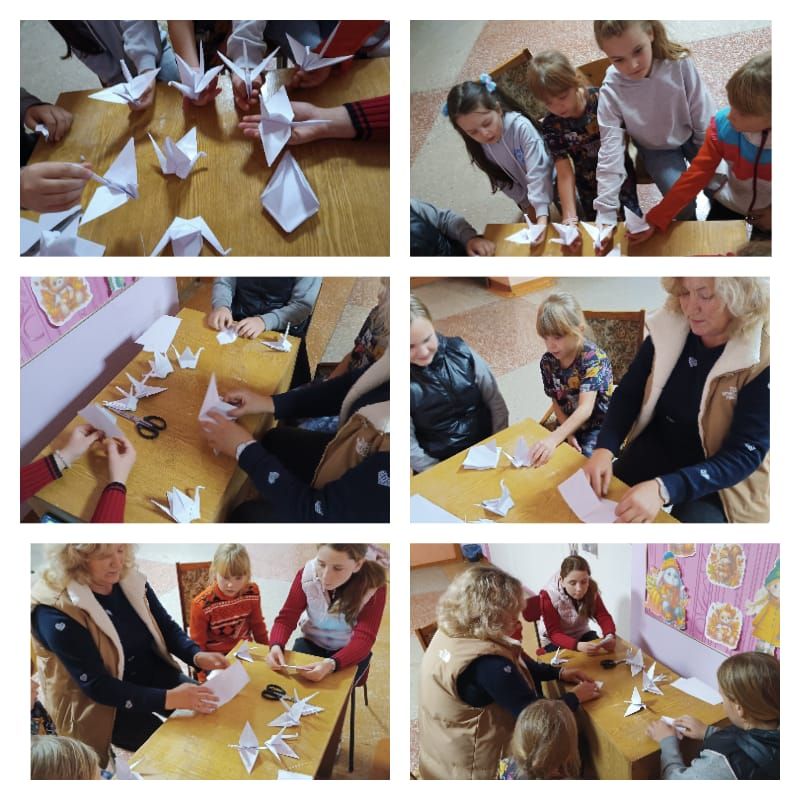Кульминационным моментом мероприятия стало вырезание из бумаги журавлика и почтение минутой молчания тех, кто погиб, защищая нас.
