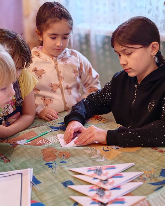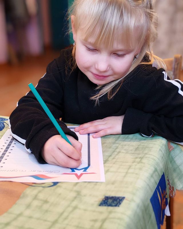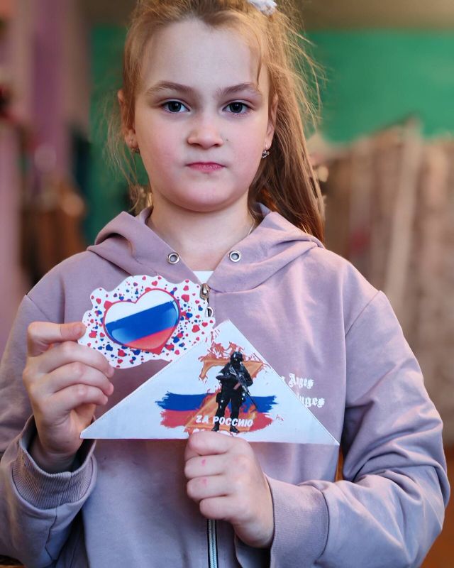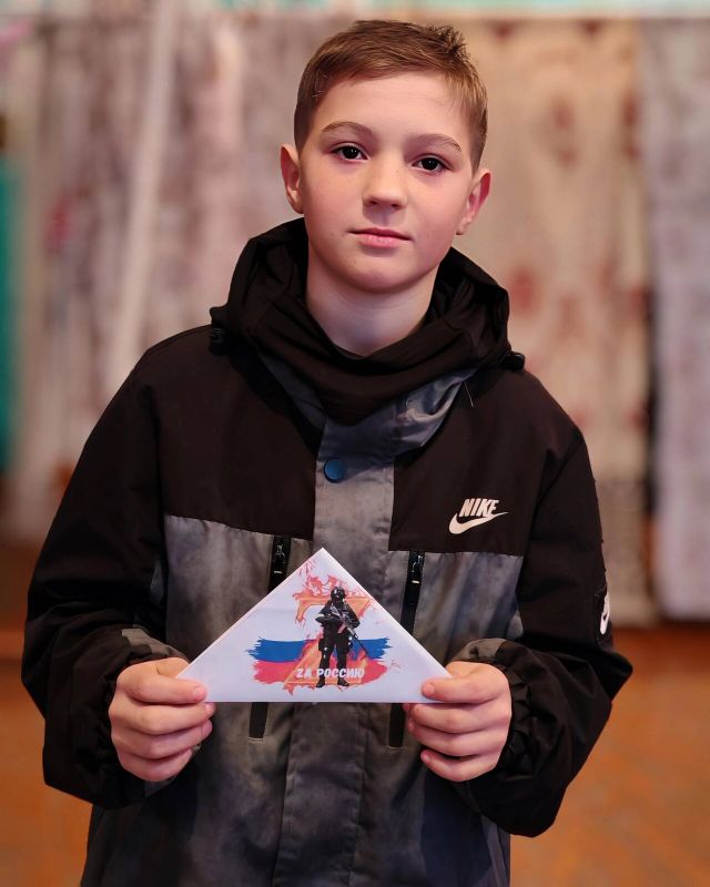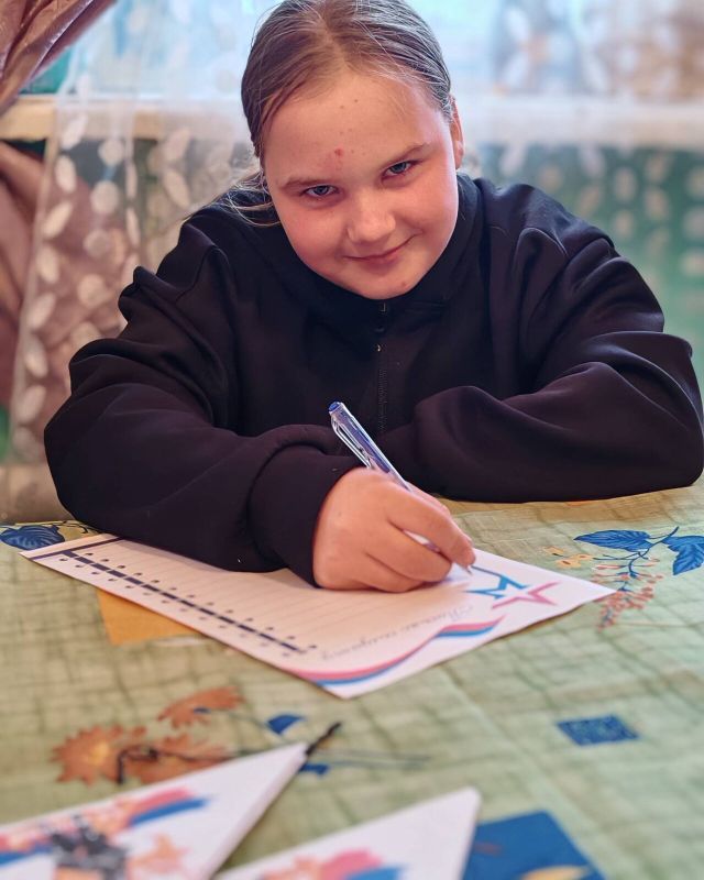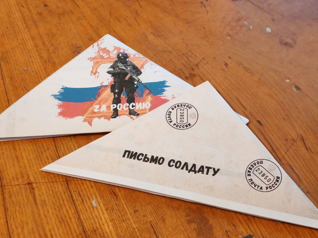 Дети написали письма солдатам, сложив их в конверт, как это было в годы Великой Отечественной войны, и написали простые и очень теплые и искренние слова поддержки нашим бойцам.