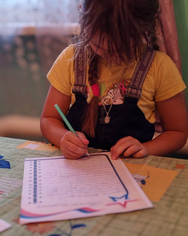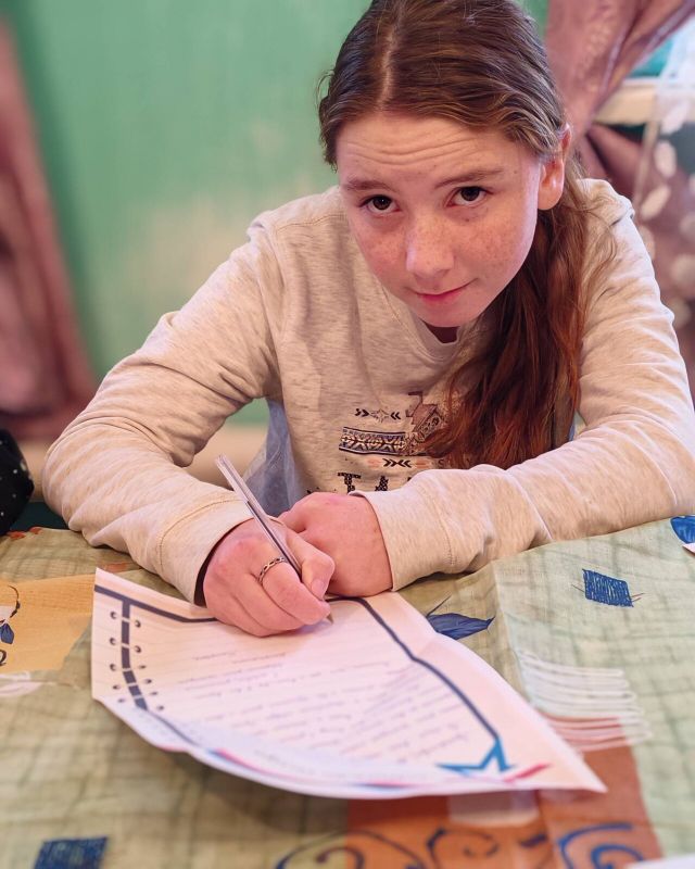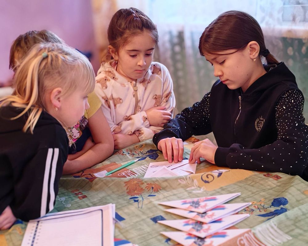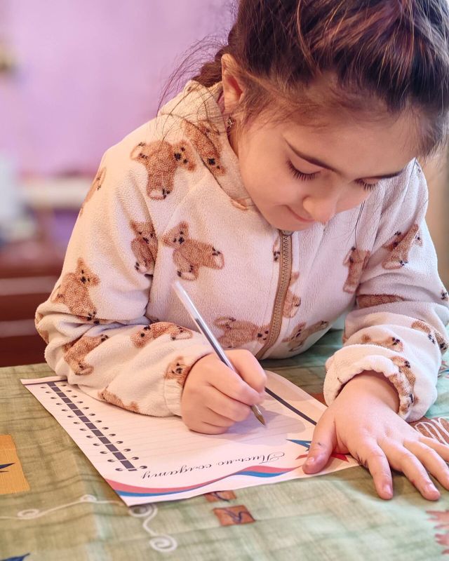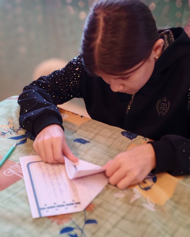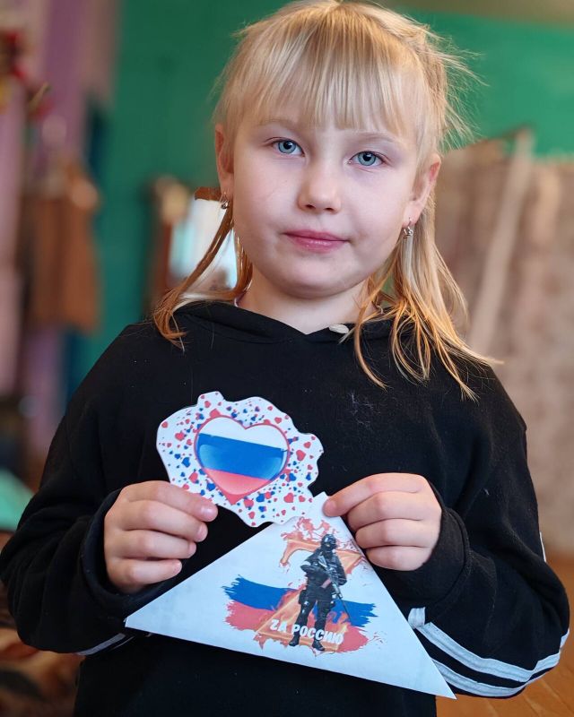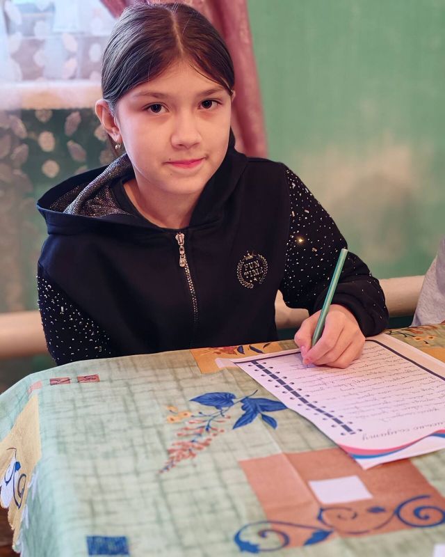 Дети написали письма солдатам, сложив их в конверт, как это было в годы Великой Отечественной войны, и написали простые и очень теплые и искренние слова поддержки нашим бойцам.