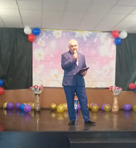 Праздничная концертная программа началась с тёплых слов поздравлений, всех женщин–мам, от ведущего Смирнова Андрея.