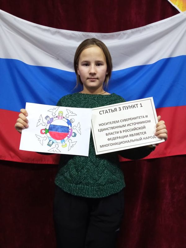 Заведующая клубом, Стародубцева Елена Ивановна, рассказала детям об истории принятия Конституции, ее основах и целях создания, дали определения основным понятиям политики: «Федерация», «Президент», «Парламент», «Правительства Российской Федерации», вместе с ребятами обсудили основные положения Конституции РФ, поговорили о соблюдении и выполнении обязанностей каждым гражданином страны.