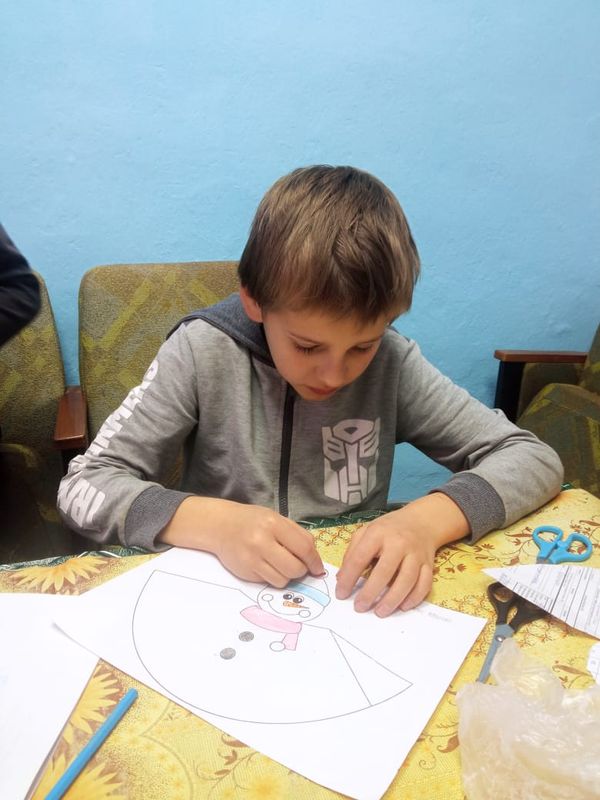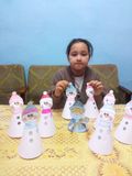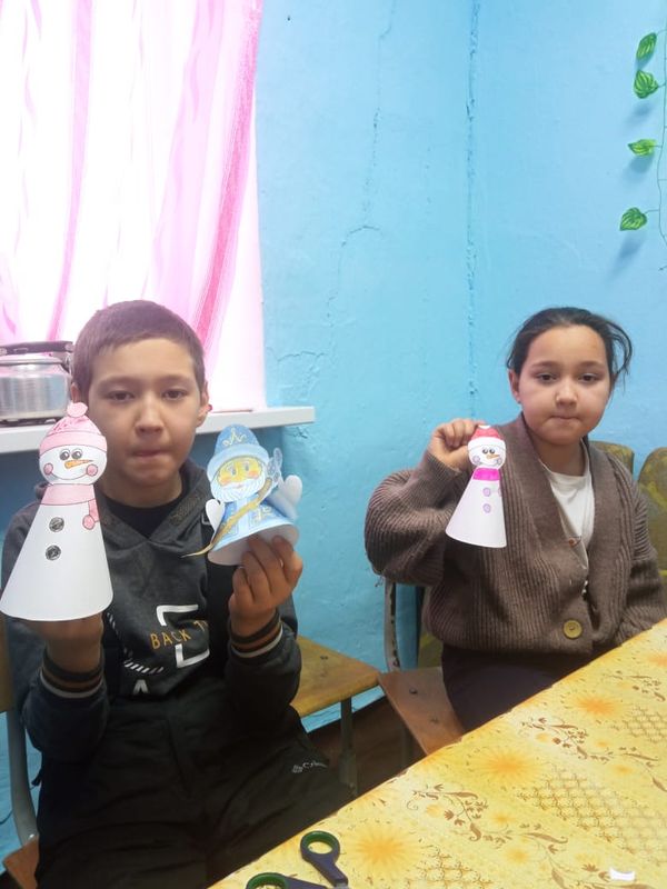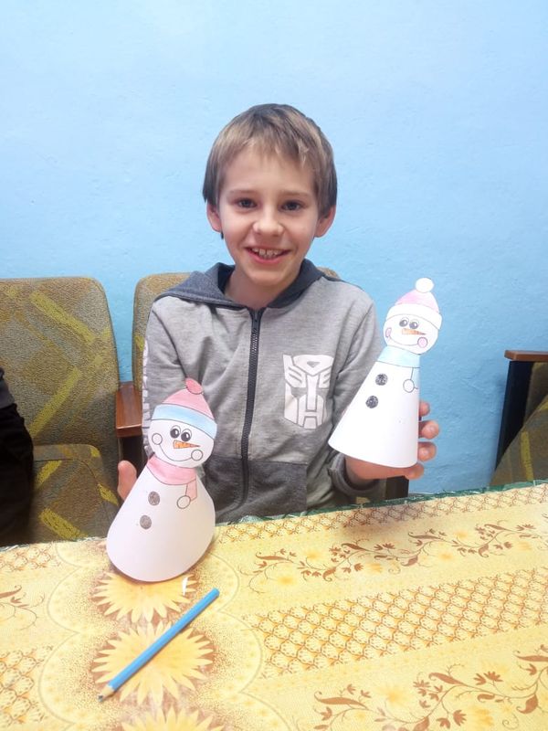 А потом принялись за творчество, в ходе которого создали своими руками поделку Снеговика, которым можно украсить елку и порадовать близких.