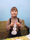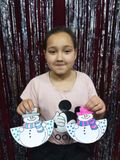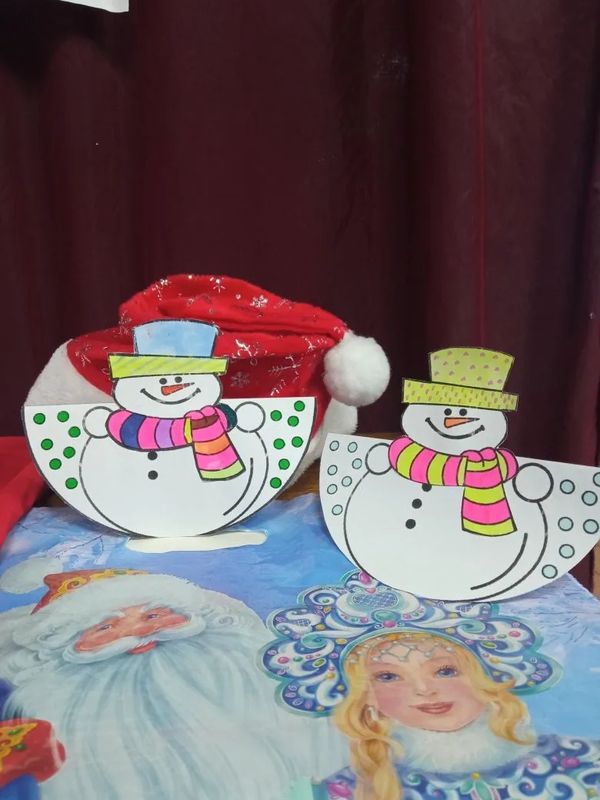 Снеговики могут быть не только снежными, но и бумажными. Именно такие аппликации сделали ребята на мастер-классе.