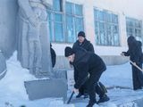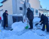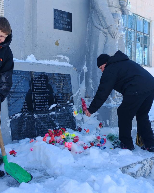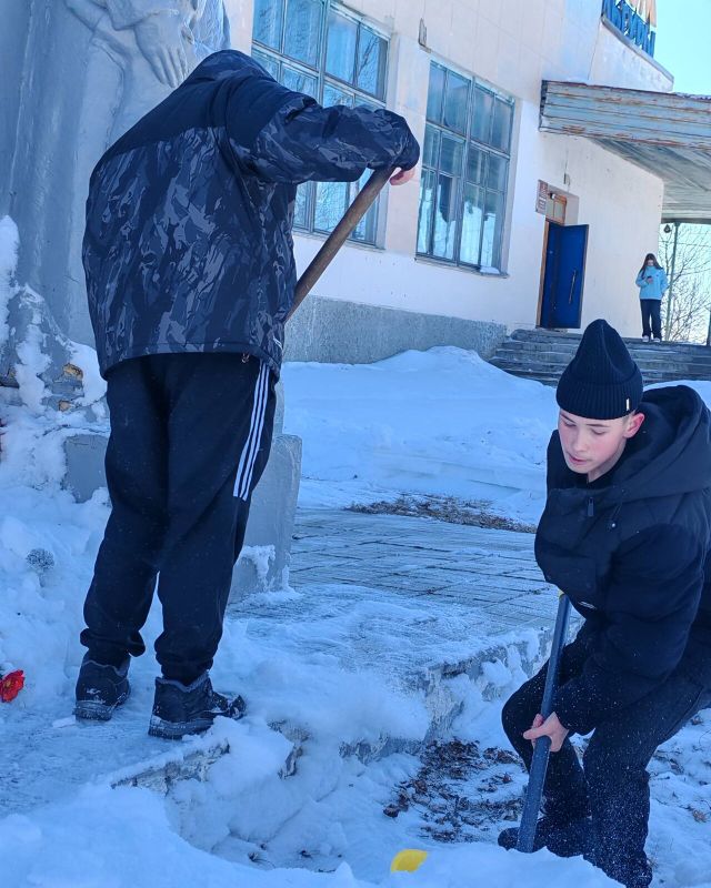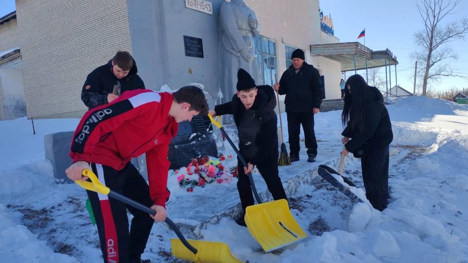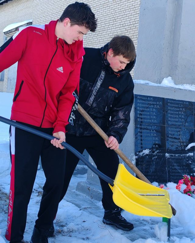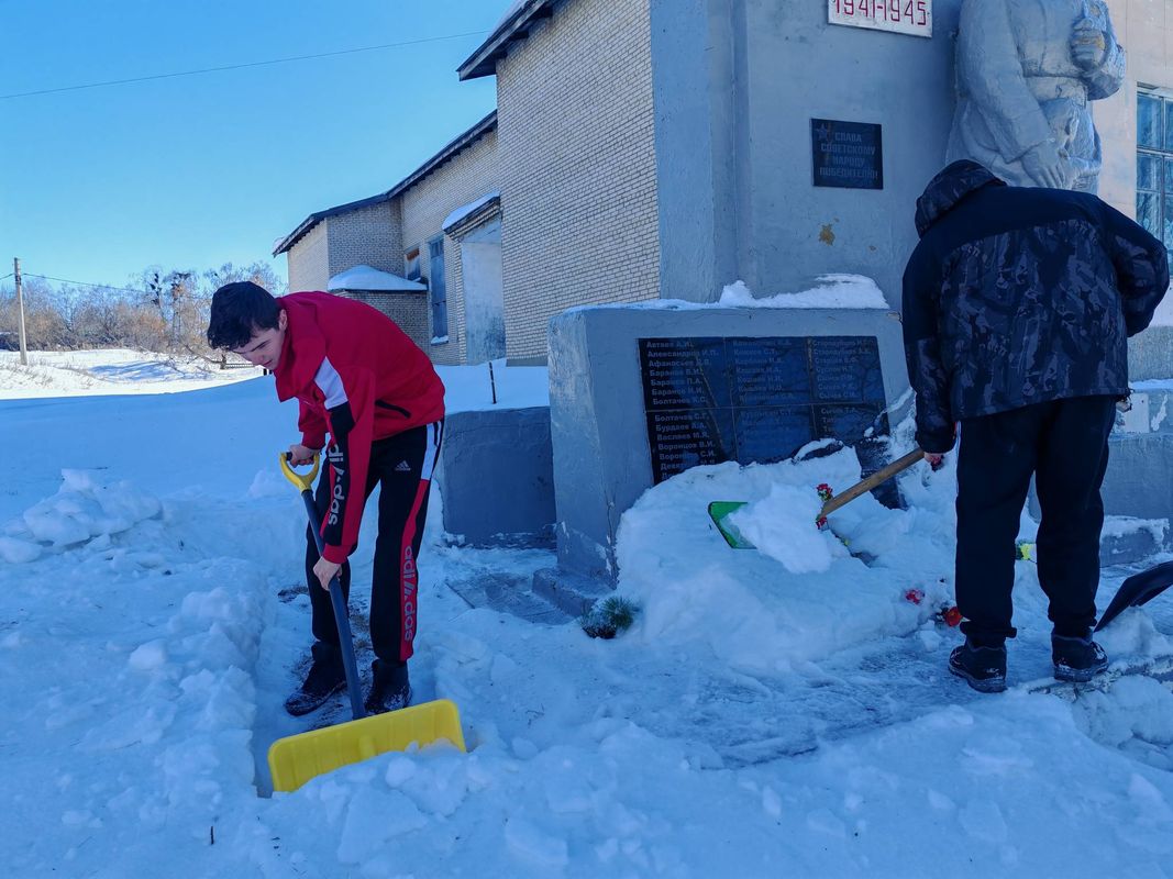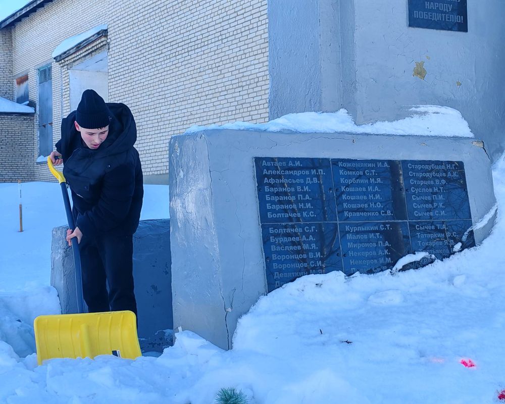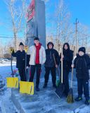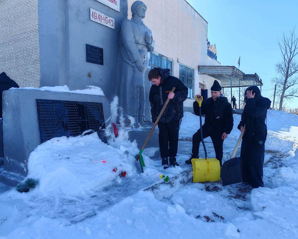 С упорством и самоотдачей ребята расчистили снег у подножия памятника, открыв доступ к нему. Теперь дорожки снова видны, а венки и цветы освобождены из снежного плена.