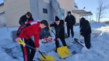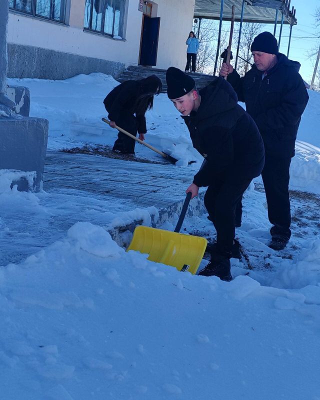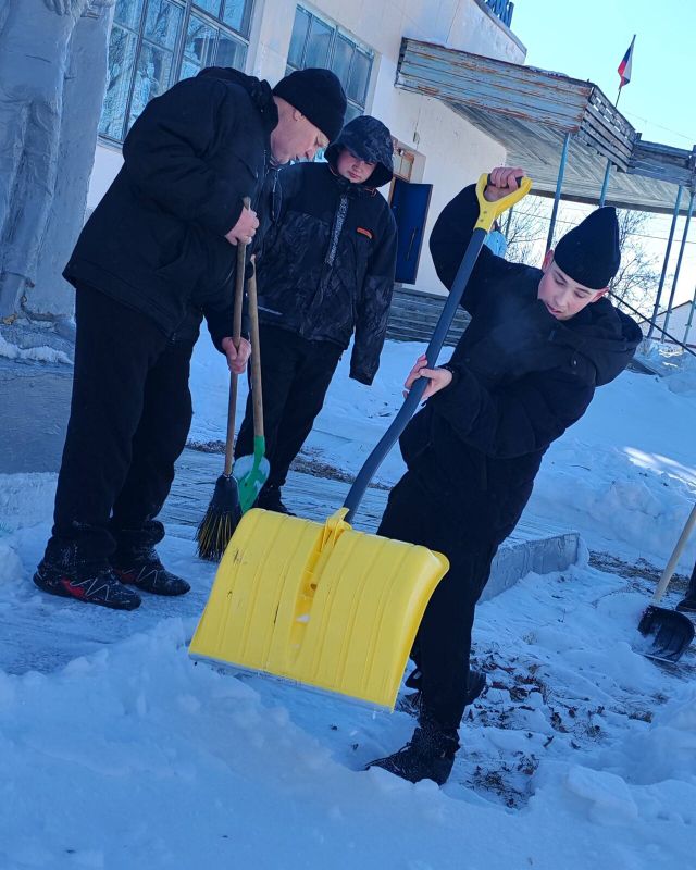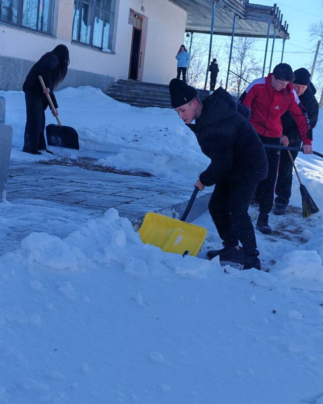 Вооружившись снеговыми лопатами, юные герои с энтузиазмом включились в решение этой важной задачи.