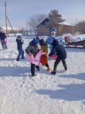 А еще ребята катались на санках, прыгали в мешках, соревновались в перетягивании каната и все дружно проводили Зиму со двора и встречали Весну.