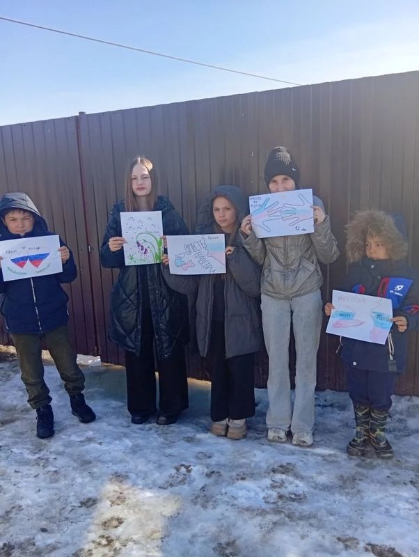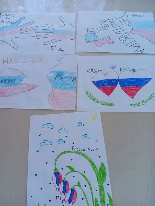 Дети нарисовали тематические рисунки «Россия! Крым! Мы вместе».