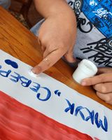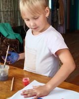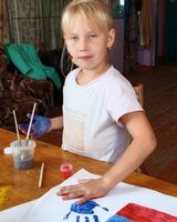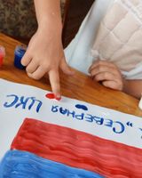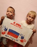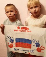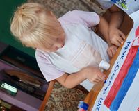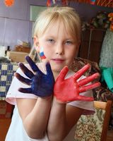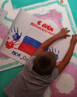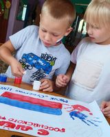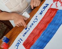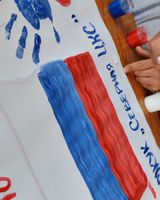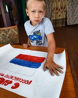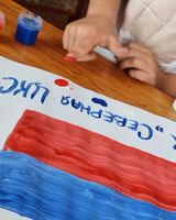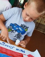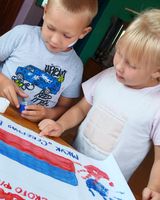 Затем дети с удовольствием рисовали на плакате разноцветной гуашью и красками, выразив в рисунке свою любовь к родной стране и краю. Красные, синие и белые полосы флага преобразили рисунок.